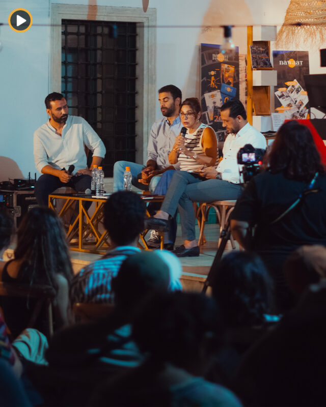 على امتداد الممرات المؤدية لقاعات عروض ”إيناوايشن“ بمهرجان نواة كان للجمهور موعد مع لعبة التحدي والذكاء ”لبحرية“. وهي رحلة استقصاء طريفة تقود المشاركين إلى كشف كوارث التلوث البحري وتحصيل معلومات ومعارف تخص الأحياء البحرية وما لحق بها جراء التلوث الكيميائي، في طريق بحثهم عن حل لغز اختفاء غامض.
