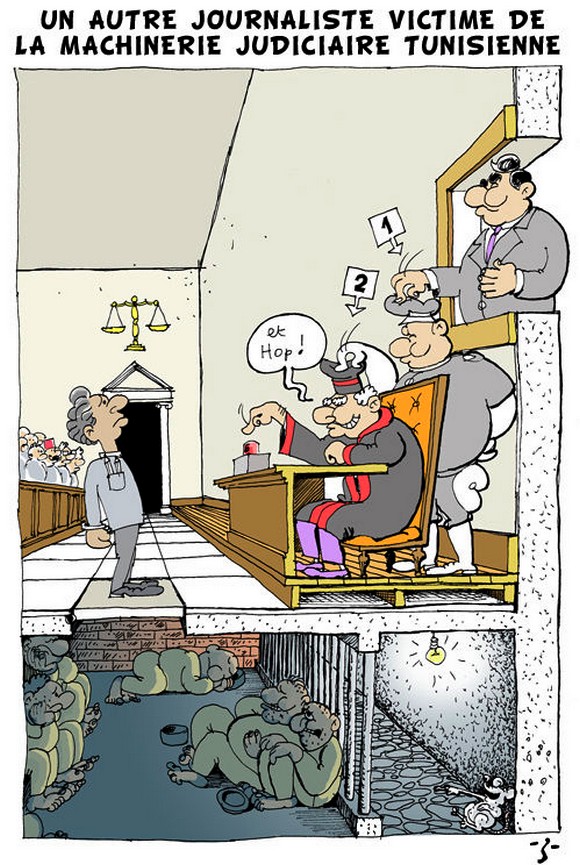 La justice tunisienne est une machine bien huilée qui émet très peu de gaz à effet de serre en se soumettant aux principes de développement durable de notre régime. Son efficacité n’a pas été démentie par la toute récente condamnation du journaliste Fahem Boukadous qui écopera de 4 ans de prison ferme pour “diffusion d’information de nature à troubler l’ordre public” (voir ici). Cet inconscient avait osé filmer les manifestations de Redeyef, de quoi surtout troubler l’ordre de notre président et de sa clique. Notre journaliste qui plus est, souffre de maladie respiratoire risque la mort en cas de détention.
