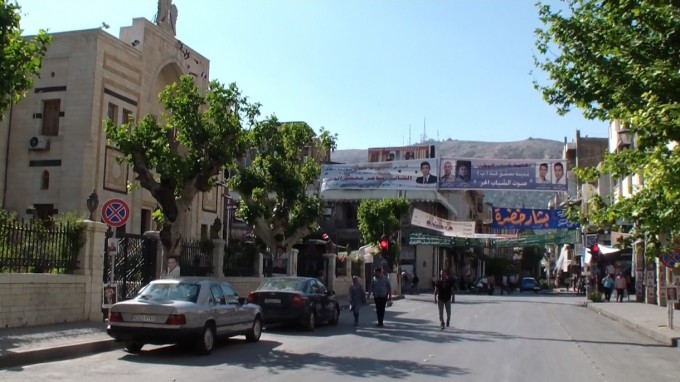 Le conducteur du bus, M.Abou Farres nous accueille avec beaucoup de bonne humeur. Je lui demande d’allumer la radio pour écouter la station Damas. On passe en boucle des chants syriens, des informations en direct des bureaux de vote et on ne parle que de trois choses répétées à longueur du trajet qu’on a emprunté: “Elections démocratiques, pluralistes et transparentes.”