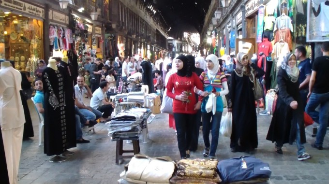 Je propose au groupe des Tunisiens avec qui je suis d’aller faire un tour au souk. L’ambiance y est très agréable et l’endroit est très peuplé. On oublierait presque qu’une guerre civile sévit à quelques kilomètres du centre de Damas.