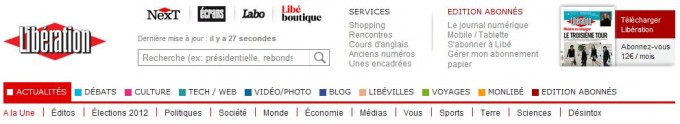 Sur la question fondamentale des médias et de la liberté d’expression, Libération s’est contenté de suivre l’affaire du quotidien Ettounsia, avec en une la photo du joueur de football tunisien et de sa petite amie torse nu : « Tunisie: trois journalistes arrêtés pour une couv’ osée. » Un article parle de la télévision tunisienne « La télé tunisienne, sans transition » pour expliquer que les changements attendus non pas lieu. Quid de toutes les formations, remaniements et nouveaux nés dans le monde des médias tunisiens ?