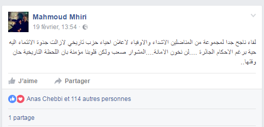 يترأس اللجنة المذكورة محمود المهيري المحامي والمستشار السياسي السابق للرئيس بن علي والعضو بآخر لجنة مركزية لحزب التجمع المنحل سنة 2008. وقد أشار المهيري في تدوينة له على حسابه الخاص بموقع التواصل الاجتماعي فايسبوك إلى أن هذه اللّجنة تهدف إلى ”التصدي لمنطق التشفي والاضطهاد السياسي“. ويستعير المستشار السابق للرئيس بن علي المعجم السياسي الدال على الاستبداد وانتهاك الحريات للاحتجاج على الأحكام الصادرة ضد زملائه المتورطين في تسخير المرافق العمومية وفتح مسالك المال العام للعائلة الحاكمة. ويندرج هذا الخطاب الجديد ضمن سياق سياسي واقتصادي يطغى عليه استشراء الفساد والإفلات من العقاب، ويشهد أيضا انتكاس مسار المحاسبة تحت وطأة الاستخدام الحزبي لملفات الفساد طيلة الست سنوات المنقضية، من حكومة حمادي الجبالي وصولا إلى حكومة الشاهد.