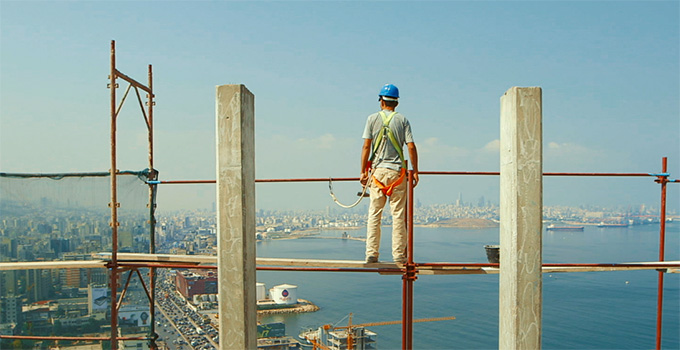 Cette opposition est déjà inscrite dans le sous-titre du film « Détruire ; construire ». Car son sujet même repose sur ce paradoxe : les travailleurs syriens réfugiés au Liban construisent des immeubles et des grattes ciels alors que leur pays tombe en ruine, ils se retrouvent sur ces chantiers d’une ville en pleine reconstruction, alors que les bombes continuent à réduire en cendres leurs maisons, leurs villes. De ce paradoxe initial, émane une force tragique, qui nous renvoie à l’absurde de cette guerre en Syrie qui a détruit tant de vies, et que le cinéaste explore à travers un jeu formel sur la matière. Le film est presque entièrement fait de plans sur l’un de ces chantiers qui pullulent dans Beyrouth et les hommes qui y travaillent : grues qui s’élèvent, mains qui manient le mortier et les instruments, image du fer qu’on tord, du ciment qu’on malaxe, des plans qui sont d’une beauté esthétique époustouflante, comme des tableaux qui magnifient la matière première pourtant laide et triviale. Mais « Taste of Cement » n’est pas seulement un exercice de style, une forme novatrice mais vaine. La force de son propos est de dessiner, à travers les images des objets et celles des gestes quotidiens de ces travailleurs, un portrait de la perte, de l’irrémédiable destruction qui a broyé les vies de milliers de Syriens et les a forcés à l’exil.
