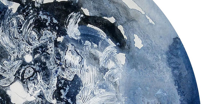 En contemplant quelques œuvres de l’exposition de Ben Ameur « Éther et mélodie » on constate des impressions, des signes, des formes, la lumière, la beauté, effet spirituel, la vibration de l’âme, et effet physique très superficiel, mais cette impression de superficiel peut se développer jusqu’à créer un événement intérieur. Plus l’objet est analysé, plus il y a un écho intérieur fort. Associé à des images astronomiques, il convient de considérer les dimensions et la forme de la Terre, autrement dit la «figure de la terre », qui constituent un thème central. Il a la particularité d’évoquer la forme ronde de la terre et la volonté du peintre d’embrasser du regard la totalité du monde.
