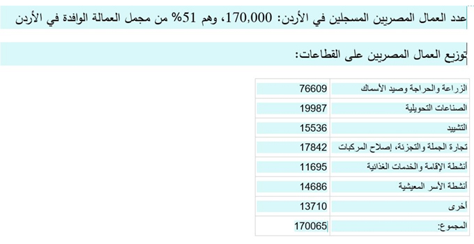 «تعال وأحكي لهم عن قصّة البقرة»، يُنادي العامل أسامة السيّد علي، الذي دخل الأردنّ في العام 2004، ساخرا من العامل الخمسيني كريم (اسم مستعار). «لقد بعت بقرتي ب 30 ألف جنيه مصري لكي أتمكّن من المجيء إلى الأردن، ولم أعمل منذ قدومي سوى ب200 دينار»، يقول كريم الذي جاء للأردن قبل شهرين بعد أن كان مزارعًا في مصر.