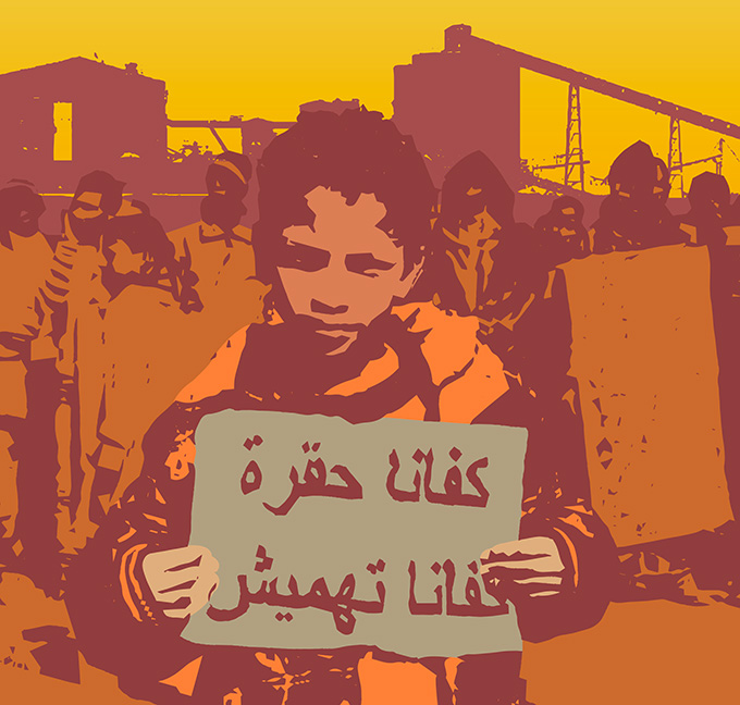 Ce modèle prédateur s’enlise dans de graves tensions, ce qui génère protestations et résistances. Les travailleurs pauvres et les chômeurs ruraux d’Afrique du Nord sont les plus touchés par la crise multidimensionnelle. Composés de petits agriculteurs, d’ouvrier(e)s ruraux/rurales quasiment sans terre, de pêcheurs et de chômeurs, les mouvements qui émergent dans toutes ces lutes résistent au pillage de leurs ressources souterraines, à la spoliation de leurs terres, à la destruction envahissante de l’environnement et à la perte de leurs moyens de subsistance. Ces mouvements, qui luttent pour leurs droits et gagne-pains, sont traversés par de multiples tensions et contradictions comme c’est le cas pour les revendications d’emplois dans des industries qui externalisent des coûts environnementaux et sociaux très élevés. Pour saisir la nature de ces mouvements, il faut traiter des questions comme : doit-on considérer ces protestations, soulèvements et mouvements comme principalement environnementaux, ou s’agit-il de protestations fondamentalement anti-systémiques ? S’agit-il d’épisodes circonstanciels de résistance ou s’agit-il plutôt du plus récent développement dans la trajectoire historique de la lutte de classes contre la dernière offensive capitaliste en Afrique du Nord ?