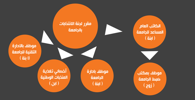 فمقرر لجنة الانتخابات مثلا، محمد صالح اليعقوبي نجد له ابنا )أنيس اليعقوبي( يشغل خطة أخصائي التغذية للمنتخبات الوطنية، أما إيناس اليعقوبي ابنة السيد المقرر فهي تشغل خطة كاتب العام مساعد بالجامعة، أما وزوجها فهو يعمل بمكتب الضبط الخاص بالجامعة وشغل عديد الخطط صلب نفس الجامعة.