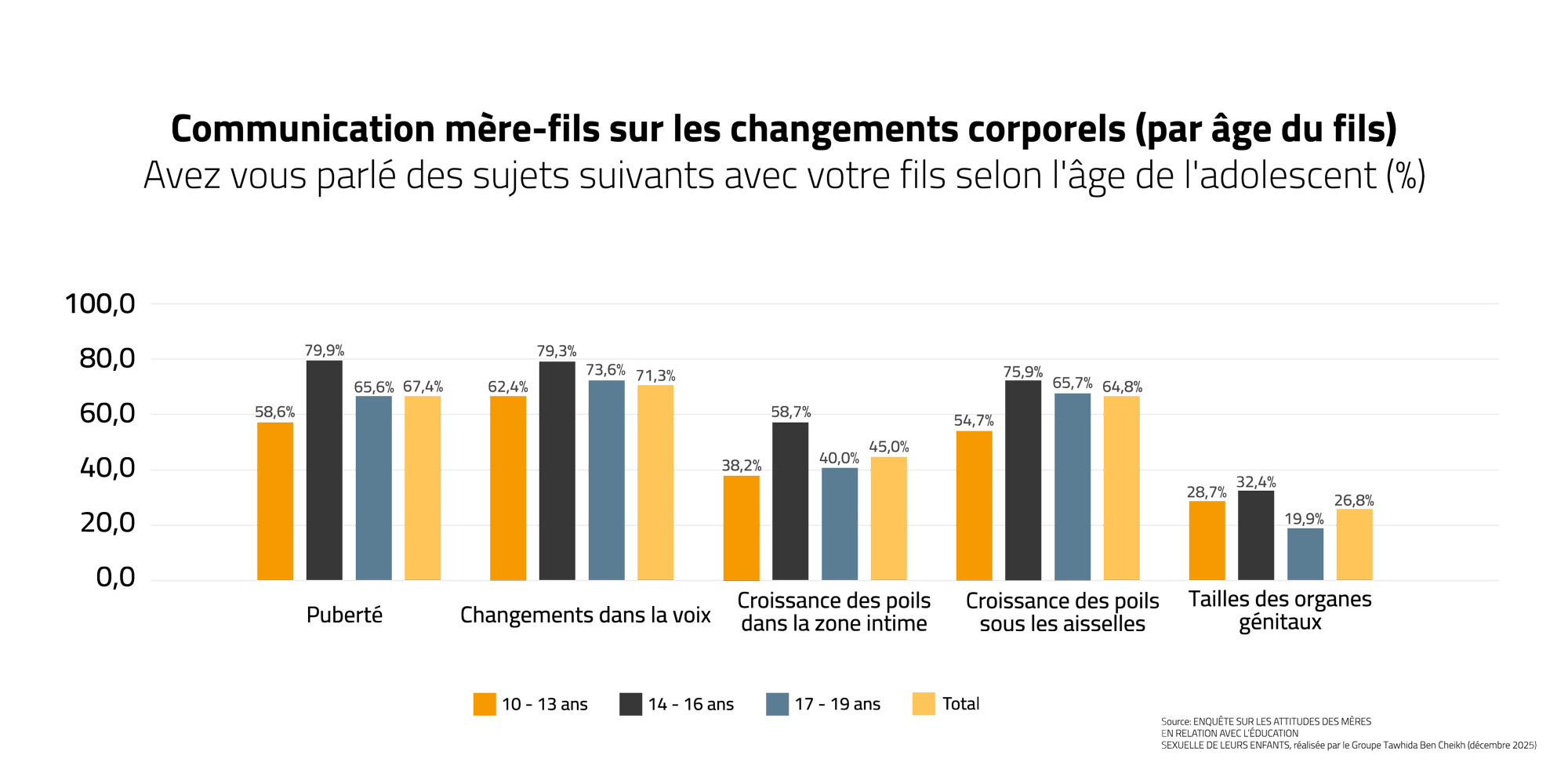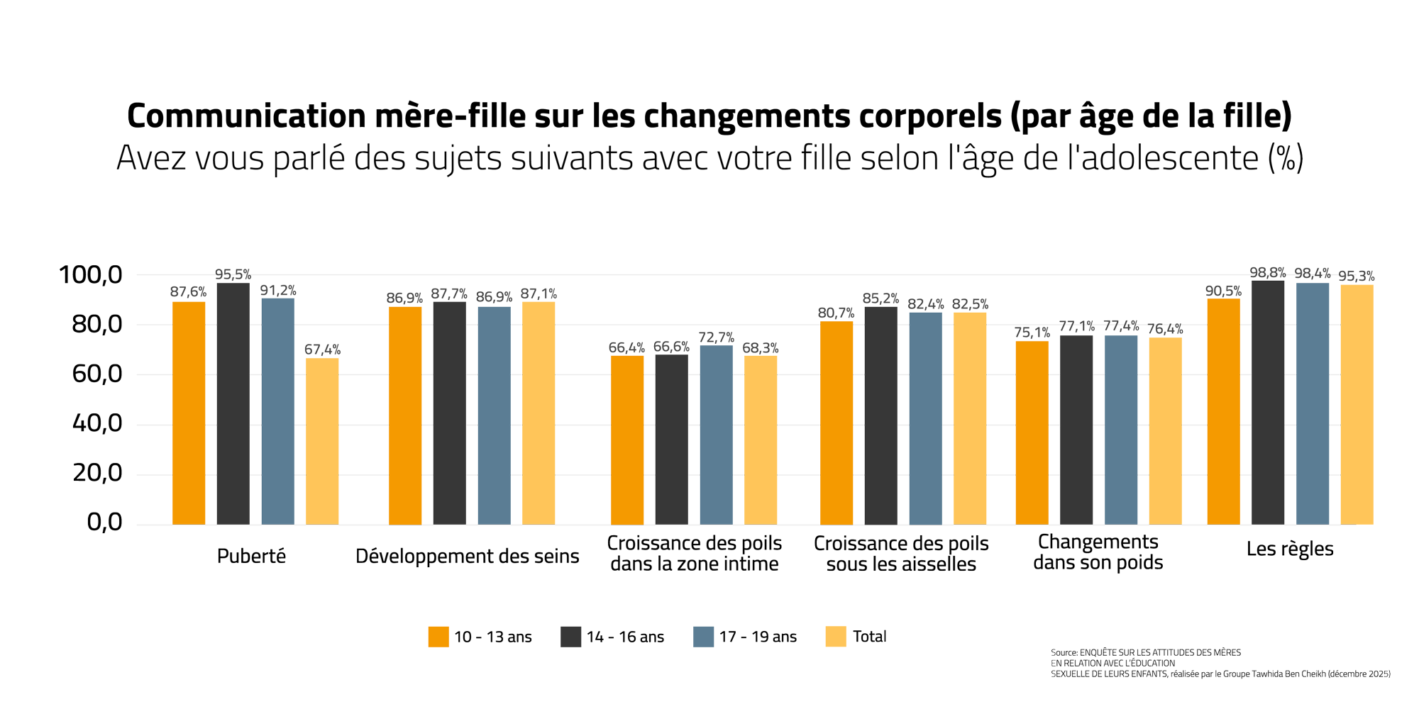 À titre d’exemple, 91 % des mères discutent de la puberté avec leurs filles, contre 67,4 % avec leurs fils. La pilosité intime ou la croissance des poils sous les aisselles sont ainsi associées au corps féminin, renforçant l’idée d’une socialisation différenciée selon le sexe.