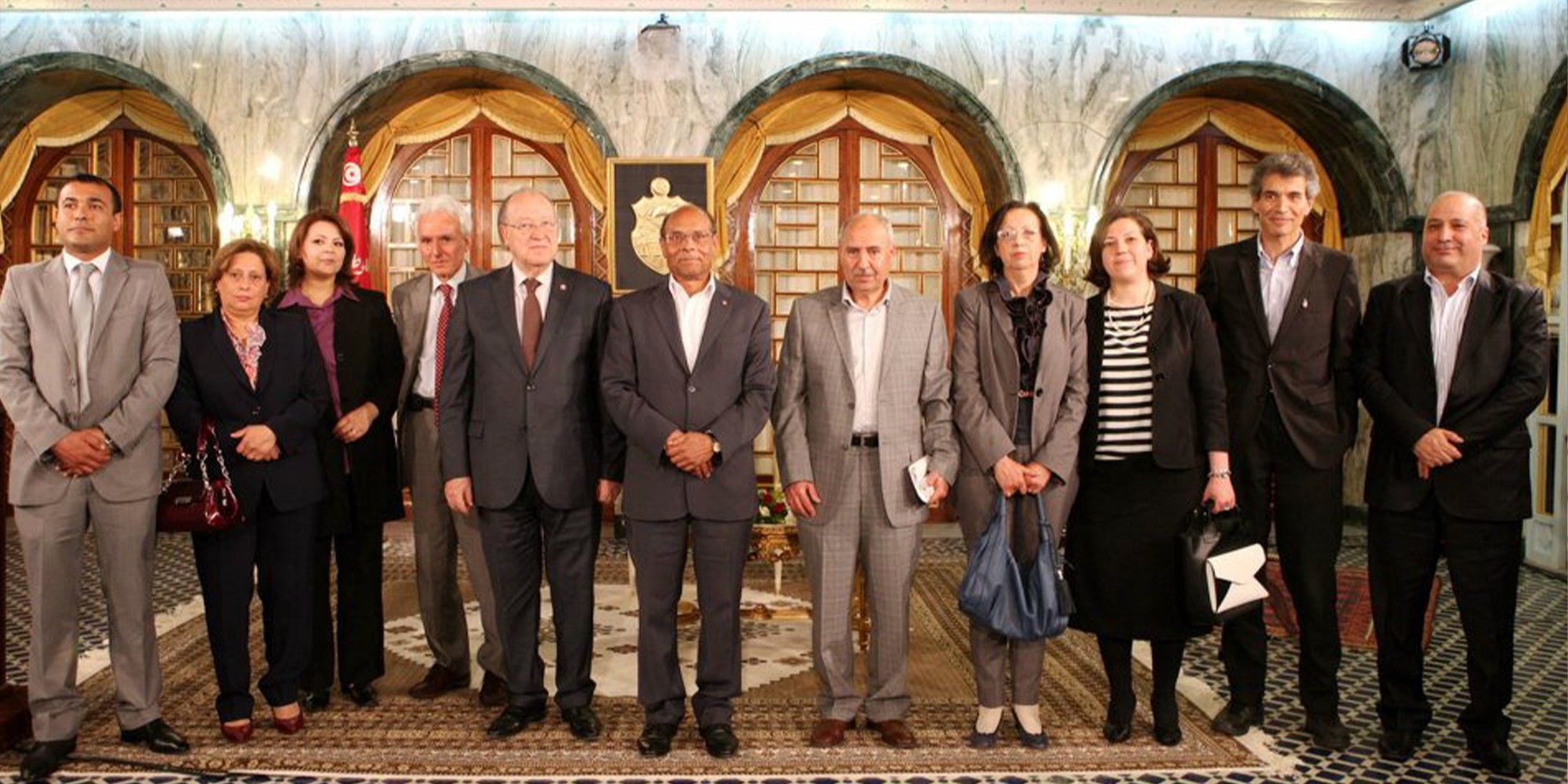 May 2013: President Moncef Marzouki and Mustapha Ben Jaafar, then president of the National Constituent Assembly, receive members of the HAICA bureau at the Carthage Palace.