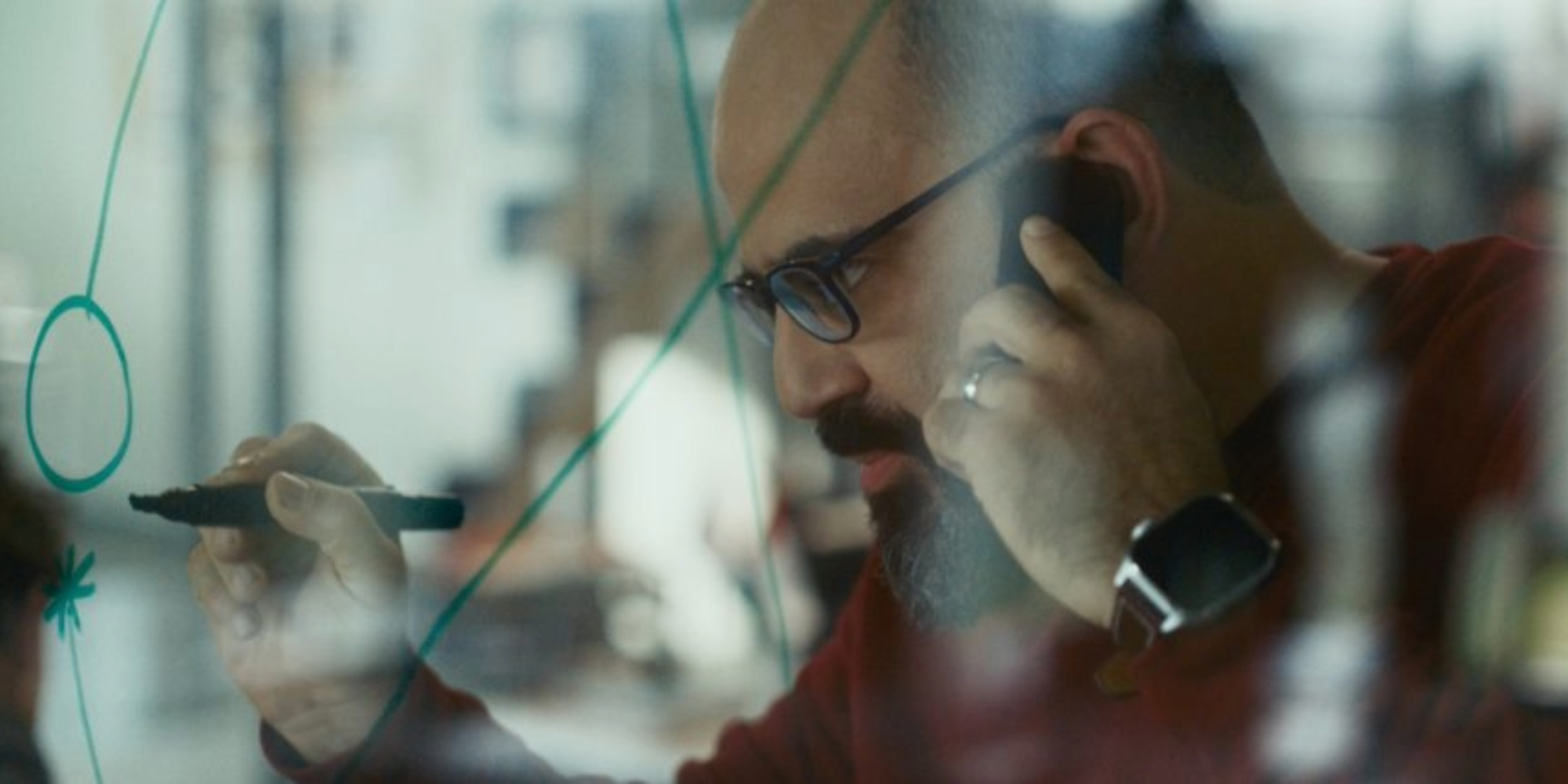A la manière d’un sage qui nous montre son doigt pour mieux faire échapper la lune à notre regard, de Gaza, nous ne verrons rien sauf cette photographie, quelques cartes Google Maps et quelques schémas délébiles esquissés sur les baies-vitrées des locaux. Est-ce du « sang changé en signe » (Jean Narboni à propos de « Kafr Kassem » réalisé par Borhane Alaouié, Cahiers du Cinéma, Février 1975) ? Peu ou prou. Car cette photo, cette maps et ce schéma, in fine, déplacent l’attention, désaxent le regard et si drame il y a, ce n’est plus celui du génocide, de la colonisation ou même du « deuil universel » (« It’s not just about Gaza, it’s about universel grief. » Communiqué de Kaouther Ben Hania à l’annonce de la sélection à la Mostra de Venise) mais bel et bien celui entre Omar l’idéaliste, l’empathe, le déterminé et Mahdi le bureaucrate, le précautionneux, le timoré.
