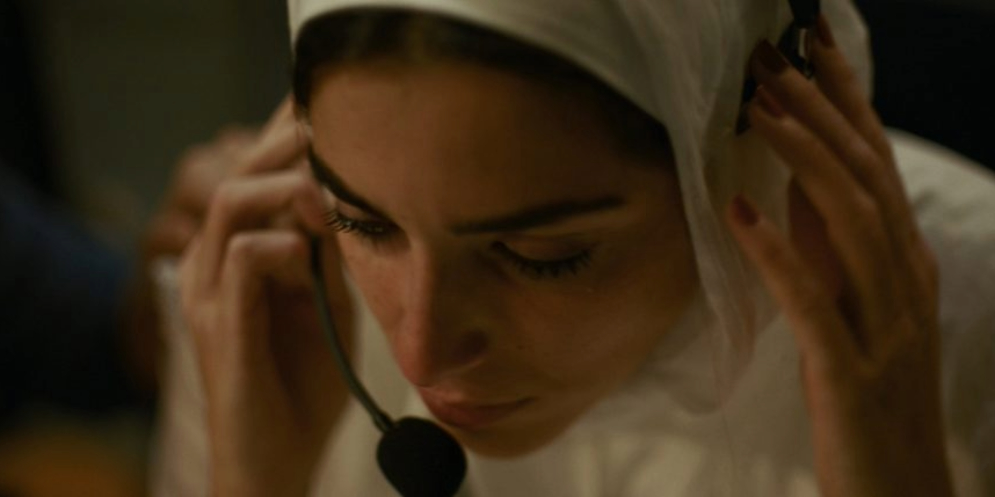 Les crises d’angoisses de cette prétendument vétérane du Croissant Rouge, sa totale et absolue incapacité à faire son travail nous disent toute sa douceur, sa fragilité et sa grâce féminine. Son rôle se limite à celui de la pleureuse. A aucun moment elle ne déploie une agentivité ou une force de caractère conséquente. Bien au contraire, à plusieurs reprises, elle est totalement figée (Ben Hania filme les femmes telle un Persée qui les immobilisent grâce à son bouclier/caméra) et alors que son seul rôle est de garder Hind au bout du fil, elle perd ses mots et reste silencieuse. Là, phallus ex machina, Omar, entre en jeu. Car lui possède la capacité d’agir et les mots à dire, l’entrain et l’entreprenariat.