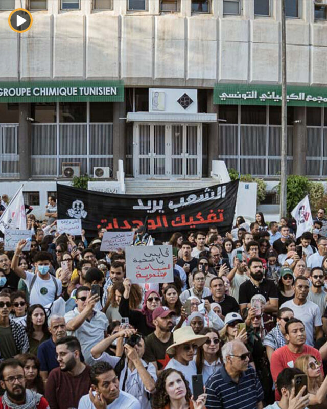 التحاما بالحراك الشعبي بڨابس المطالب بوقف جريمة التلوث الكيميائي، انتظمت السبت 25 أكتوبر بالعاصمة مظاهرة انطلقت من نقابة الصحفيين باتجاه المقر الإداري للمجمع الكيميائي بلافايات بالعاصمة. المسيرة رفعت شعارات مطالبة بتفكيك وحدات المجمع الملوّثة ومنددة بتقصير السلطة لإنهاء الجرائم البيئية في ڨابس، كما تشبثت التظاهرة بتطبيق قرار حكومي يقضي بإنهاء الجريمة البيئية صادر منذ 2017 ورفض تجاهله خدمة لمصالح الحرفاء الخارجيين، على حساب المواطنات والمواطنين ضحايا التلوث الكيميائي بڨابس.