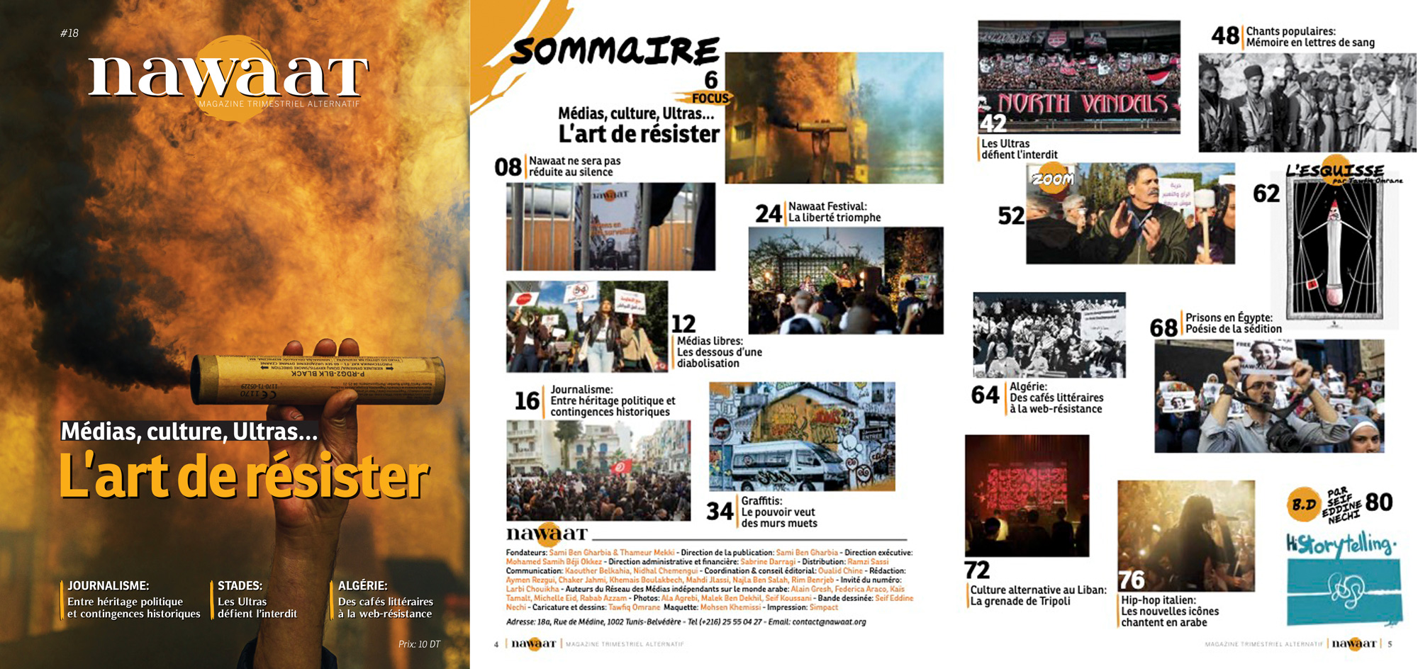Ce 18ème numéro de Nawaat Magazine laissera sans doute un souvenir spécial pour ses lecteurs, comme pour ceux qui l’ont façonné. D’abord parce qu’il a été réalisé dans des conditions particulières, après un mois de suspension décrété par les autorités. L’incertitude, l’angoisse des lendemains, auront sans doute contribué à lui donner cette saveur épicée.