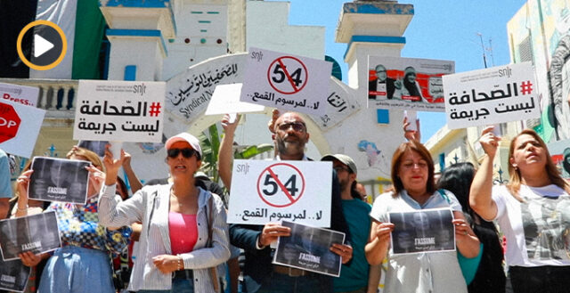 إطلاق سراح الصحفيين المسجونين، من أجل إسقاط المرسوم 54 سيء الذكر، وغيرها من الشعارات والمطالب التي رفعتها نقابة الصحفيين الاثنين 27 ماي بحضور عائلات الصحفيين الموقوفين. التظاهرة اكدت خطورة مسار محاكمات الرأي المسلطة على الصحفيين والنشطاء والمحامين وحملة الايقافات التي شملت اشخاصا عبروا عن اراء ناقدة للسلطة، الصحفيون الحاضرون في الوقفة رفعوا شعارات تطالب بالعدالة والقطع مع محاكمات الرأي وقضاء التعليمات.
